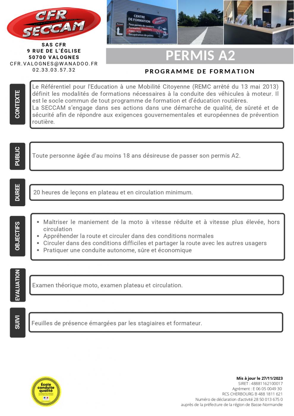 - Permis A2 30H - 1200 € TTC (TVA 20%)